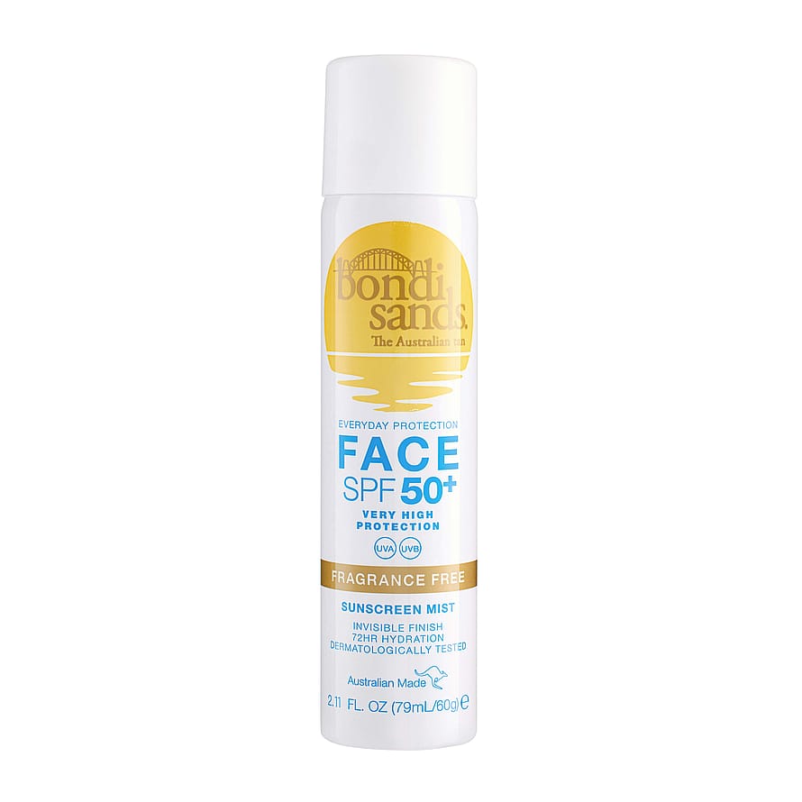 Njut av en soldränkt dag i äkta Bondi Sands-anda med SPF 50+ Fragrance Free Face Sunscreen Mist. Denna skonsamma solskyddsmist skyddar mot UVA- och UVB-strålar, är snabbabsorberad och har en osynlig finish när den torkat – därför är den perfekt att använda över makeup! Den parfymfria formulan ger huden näring och återfuktar i upp till 72 timmar.• Ansiktsmist med SPF 50+• Osynlig finish, perfekt över smink• Ger näring och återfuktar