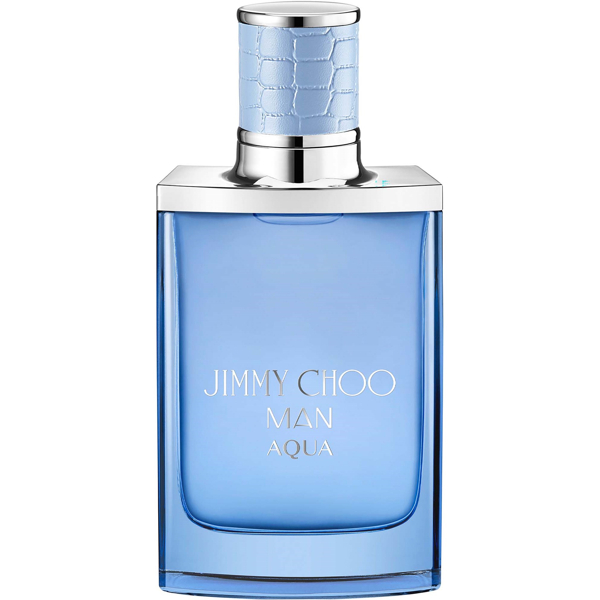 Jimmy Choo Man Aqua Eau de Toilette är en frisk, träig marin doft tillägnad en man som omfamnar livet. Den öppnar upp med en våg av kryddig, söt kardemumma som möter fräschör i form av grapefrukt, innan den dunstar i ett friskt hjärta av iskall pelargon och salvia, som båda blandas med det marina ackordet som är hjärtat i Jimmy Choo Man Aqua. I basen får patchouli och amber en mjuk, havsinspirerad aspekt med tillsats av salt mossa Jimmy Choo Man Aqua Eau De Toilette 50 ml